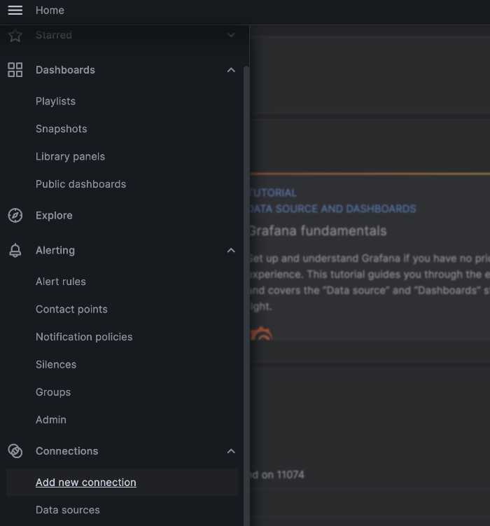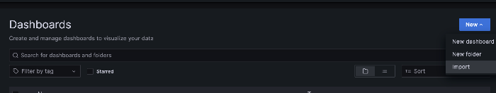 다시, 그라파나 화면으로 돌아가서 왼쪽 카테고리의 DashBoards 로 들어가자.