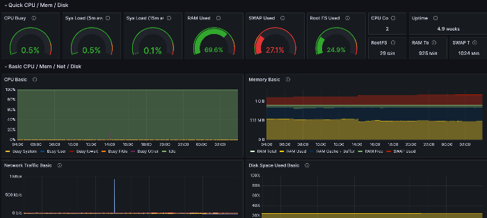 때문에 먼저, Prometheus, Grafana, node exporter를 운영중인 서버에 모두 설치, 실행하여 추가 ec2 인스턴스 없이 모니터링 하려했다. 하지만 metrics를 prometheus에서 받아오는 과정에서 트래픽이 발생하여 서버의 메모리를 차지할 것으로 예상되어 스케일링이 필요해질 것 같아 비용적인 측면에서 부담되는 상황이 똑같이 발생할 것으로 예상되었다.