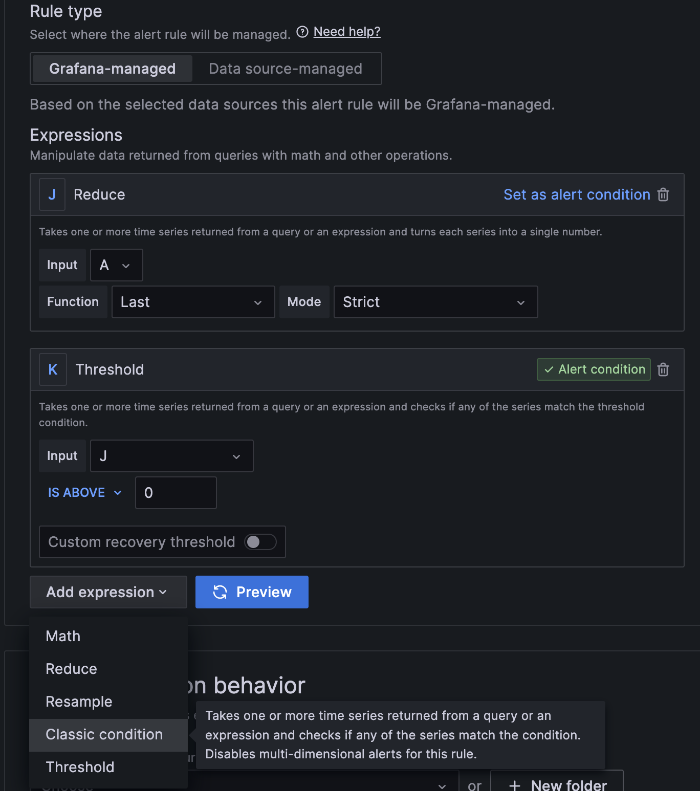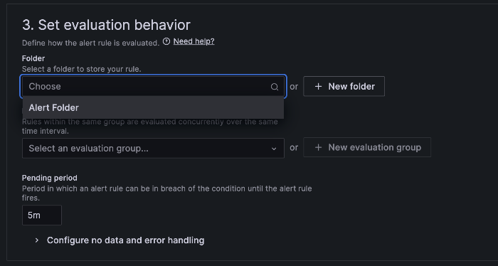 선택한 폴더에 만들 Alert Rule이 생성된다.