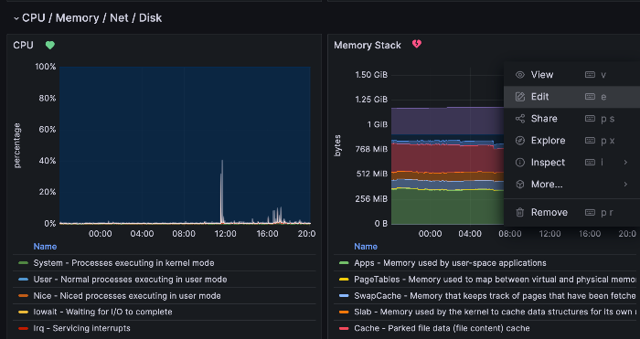 기존에 만들어뒀던 Dashboard에 들어가서 원하는 항목의 오른쪽 상단에 마우스를 가져다 대면 나오는 Edit을 선택한다.