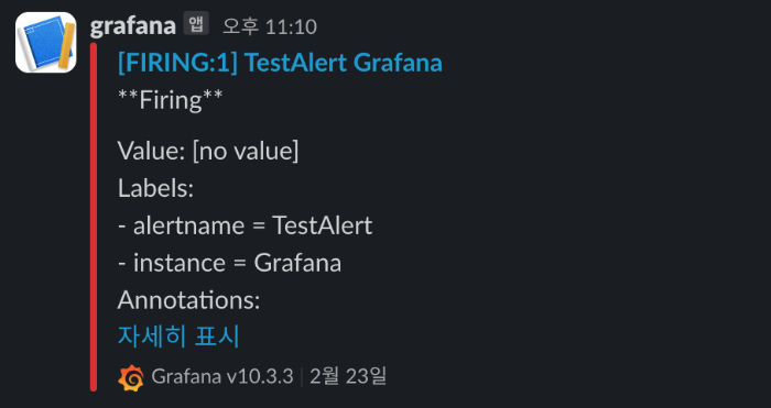 https://afsdzvcx123.tistory.com/entry/Grafana-Alert-Slack-%EC%97%B0%EB%8F%99%ED%95%98%EA%B8%B0