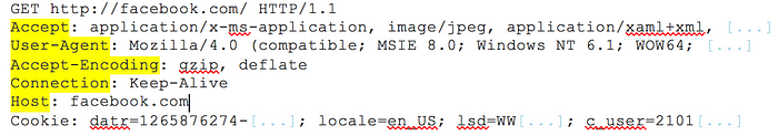 TCP 연결이 설정되면, 데이터 전송을 시작할 차례다. 브라우저는 maps.google.com 웹 페이지를 요청하는 GET 요청을 보낼 것이다. 자격 증명을 입력하거나 양식을 제출하는 경우, 이것은 POST 요청일 수 있다. 이 요청에는 브라우저 식별(사용자 에이전트 헤더), 수락할 요청 유형(수락 헤더), 추가 요청을 위해 TCP 연결을 유지하도록 요청하는 연결 헤더와 같은 추가 정보도 포함될 것이다. 또한 이 도메인에 대해 브라우저가 저장한 쿠키에서 가져온 정보도 전달될 것이다.