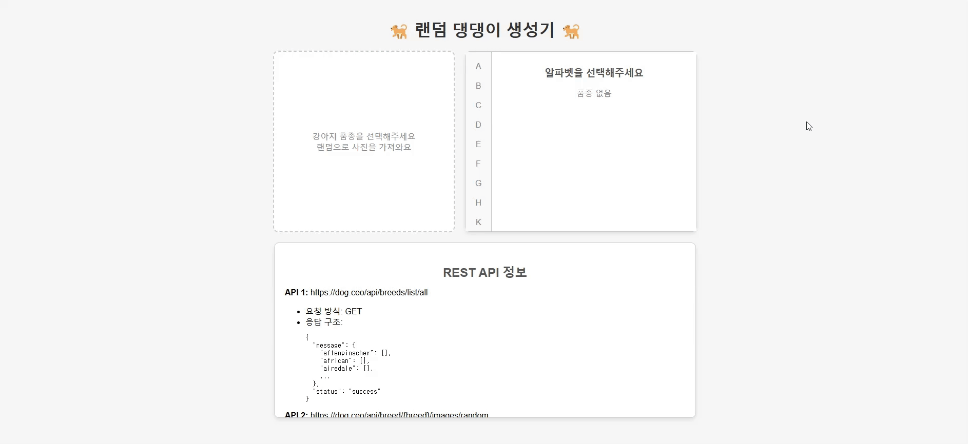 각자 REST API 를 활용하는 컴포넌트를 만들어서 라우팅시켜 묶어서 페이지를 완성하는 미니 프로젝트였다.