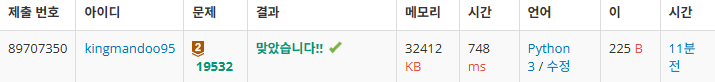 문제에 있는 조건을 그대로 for문과 if문으로 코드로 바꿔 적은 것이다.
