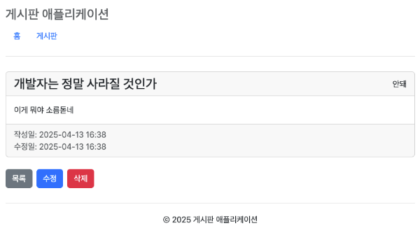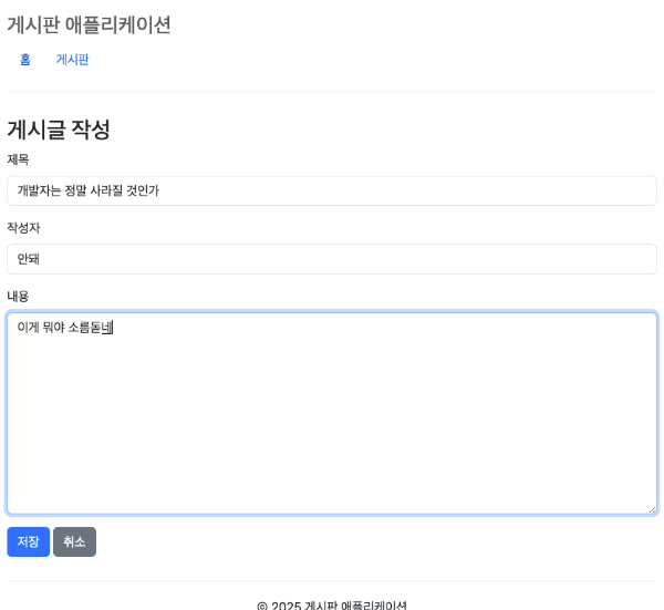 요구한 명령은 "간단한 CRUD기능이 있는 웹 게시판을 만들어줘"
