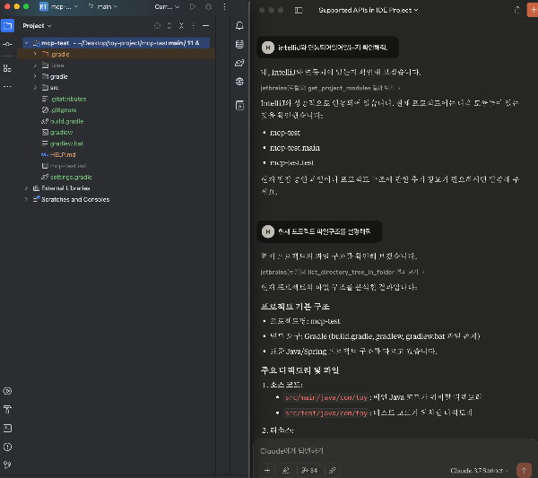 확인 결과, 클로드가 intelliJ 프로젝트 구조까지 완벽히 파악하고 있는것을 확인했다.